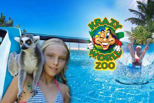 Um dia em cheio para toda a Família: Entre no mundo louco dos animais e muita diversão no Krazy World Zoo. Entrada para 1 crian....